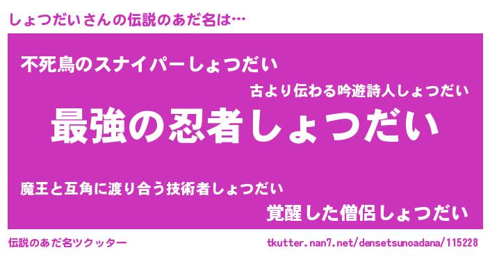 | 意味不明あだ名 | 『しょつだいフォーエバー』 |