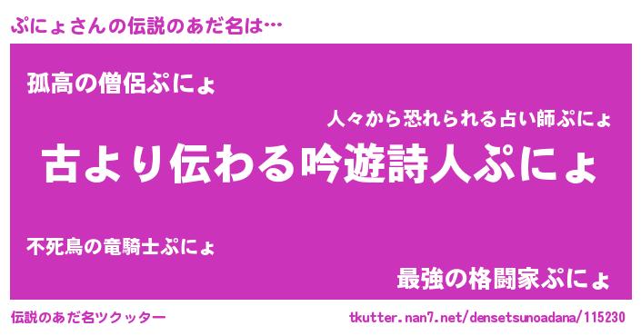 | 女子向けラノベタイトル風あだ名 | 『ぷにょの契約王妃』『闇のぷにょ』 |