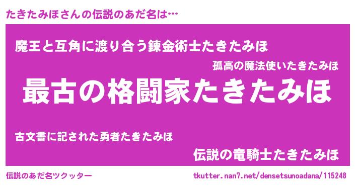 | ヒーロー風カッコイイあだ名 | 『ウルトラたきたみほマン』 |