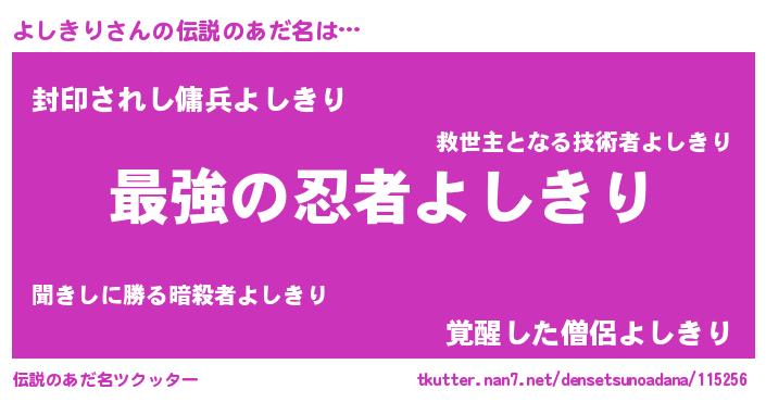 | 意味不明あだ名 | 『よしきりフォーエバー』 |