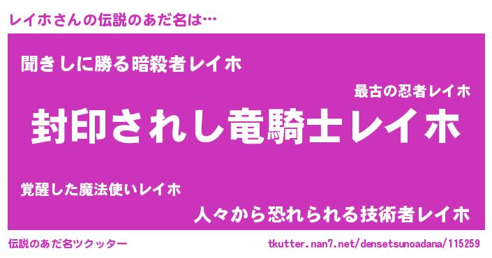| ヘコむあだ名 | 『レイにー』『レイホ(笑)』『豆乳』 |