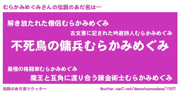| ポケモン風あだ名 | 『ムラチュウ』『ヒムラカミメグミ』 |