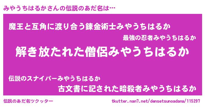 | 意味不明あだ名 | 『とにかく怪しいみやうちはるか』 |