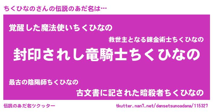 | ヒーロー風カッコイイあだ名 | 『スーパーチクヒナノ』『銀牙騎士チク』 |