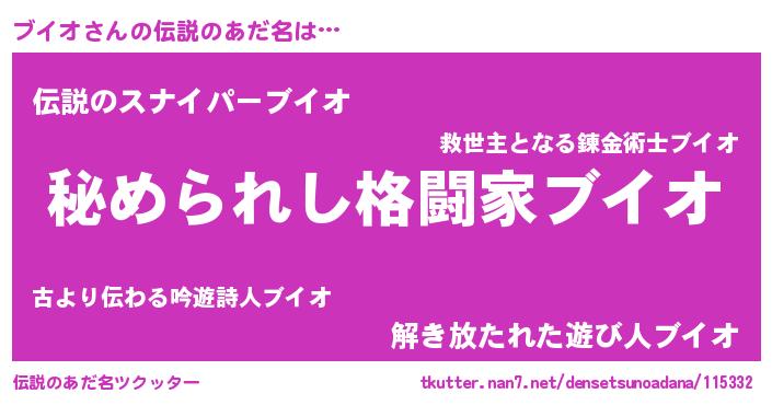 | ファンタジー風あだ名 | 『エターナルブイオー』『ブイフェル』 |