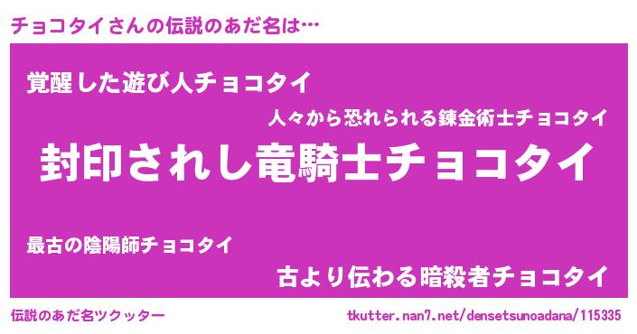 | 胡散臭い通販商品みたいなあだ名 | 『億万長者になれるブレスレット…その名も「チョコタイ」』 |