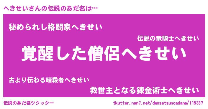 | ポケモン風あだ名 | 『ヘーキイ』『ヒヘキセイ』 |