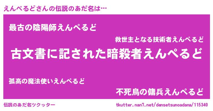 | 意味不明あだ名 | 『永久保存えんぺるど』『自称えんぺるど』 |