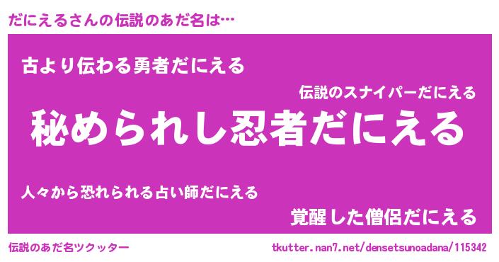 | 意味不明あだ名 | 『自称だにえる』『だにえるフォーエバー』 |