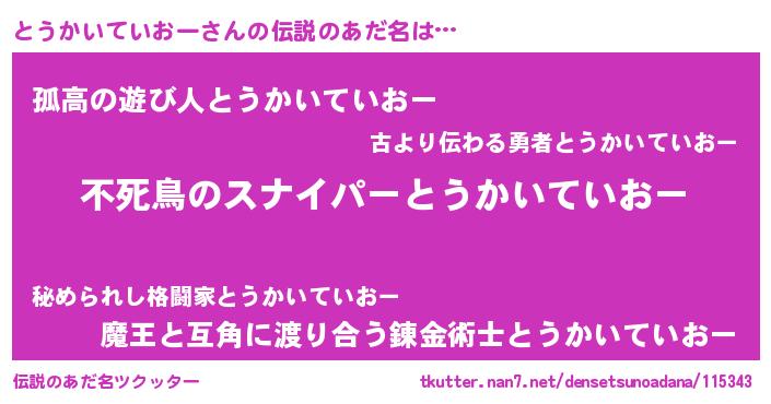 | 胡散臭い通販商品みたいなあだ名 | 『モテモテ間違いなし霊験あらたかなお札…その名も「とうかいていおー」』 |
