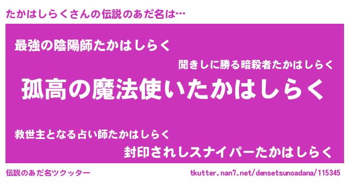 | 男性向けラノベタイトル風あだ名 | 『緋弾のタカハシラク』 |