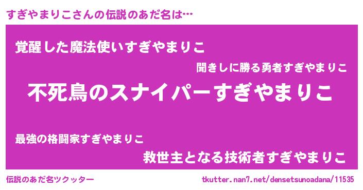 | 女子向けラノベタイトル風あだ名 | 『すぎやまりこ姫と円卓の騎士』 |
