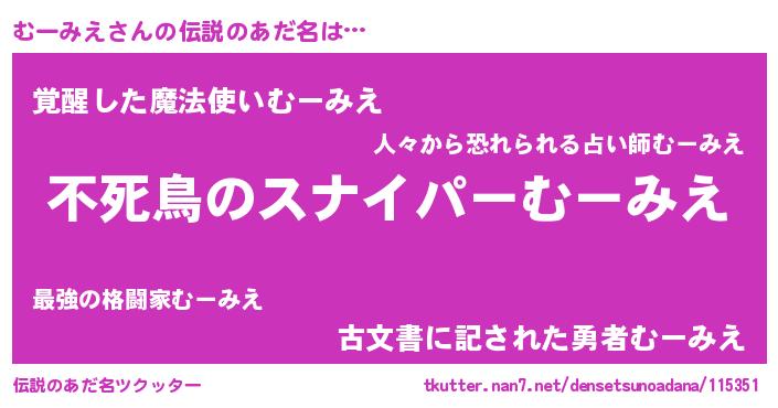 | 胡散臭い通販商品みたいなあだ名 | 『モテモテ間違いなし霊験あらたかなお札…その名も「むーみえ」』 |