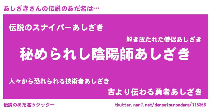 | 意味不明あだ名 | 『あしざきフォーエバー』『自称あしざき』 |
