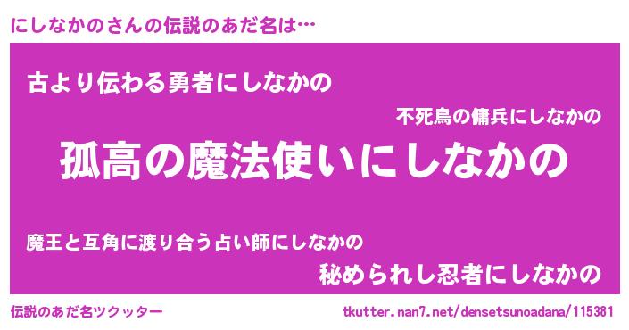 | 胡散臭い通販商品みたいなあだ名 | 『信頼と実績のサプリメント…その名も「にしなかの」』 |