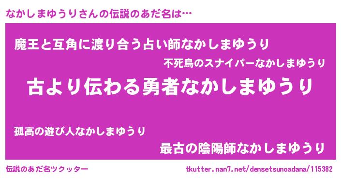 | 意味不明あだ名 | 『自称なかしまゆうり』 |