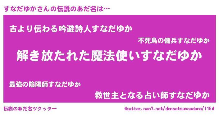 | ヒーロー風カッコイイあだ名 | 『仮面スナダー』『超時空戦士スナダユカ』 |