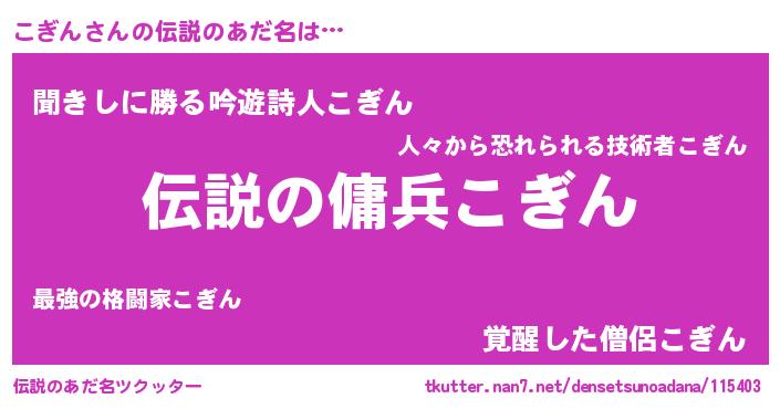| 男性向けラノベタイトル風あだ名 | 『緋弾のコギン』『こぎんの憂鬱』 |
