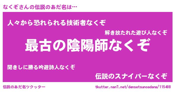 | ファンタジー風あだ名 | 『カークナクラー』『エターナルナクゾー』 |