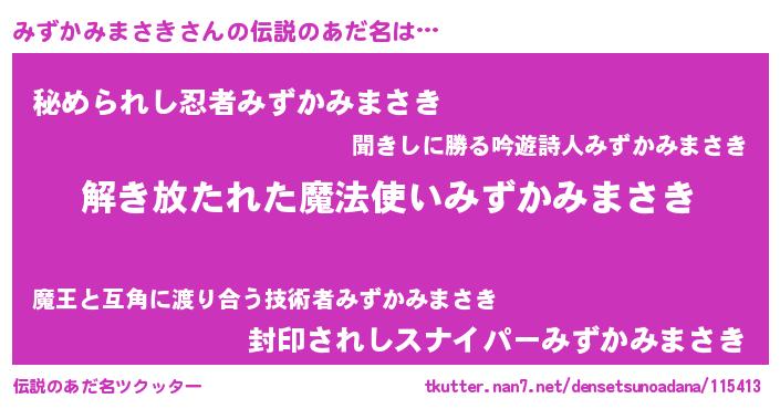 | 意味不明あだ名 | 『とにかく怪しいみずかみまさき』 |