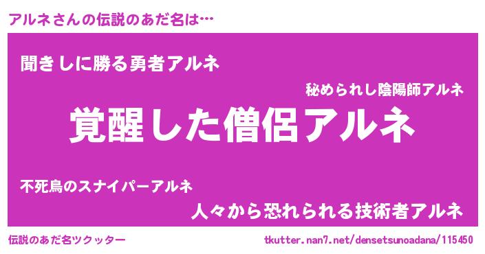 | ヒーロー風カッコイイあだ名 | 『天弓騎士アル』『ネオアルネ』 |
