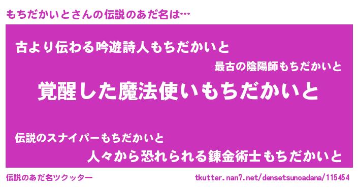| 男性向けラノベタイトル風あだ名 | 『もちだかいとに滅ぼされるだけの簡単なお仕事です』 |