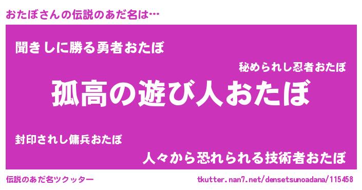 | 意味不明あだ名 | 『とにかく怪しいおたぼ』 |