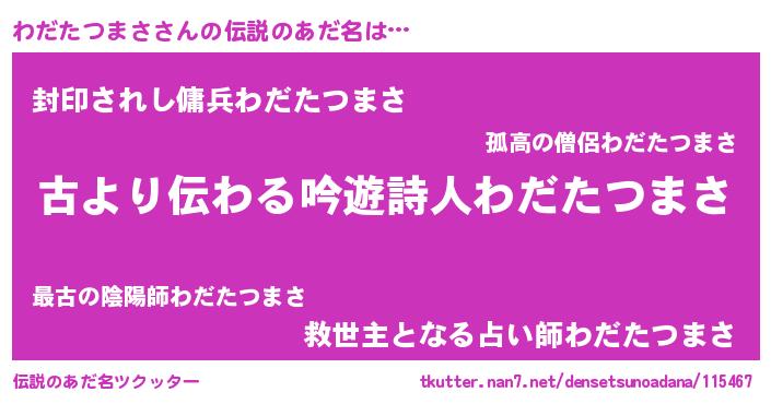 | ヘコむあだ名 | 『わだたつまさ(小並感)』『わだにゅー』 |