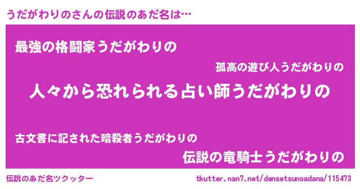| ヒーロー風カッコイイあだ名 | 『正義の使者うだがわりの』 |