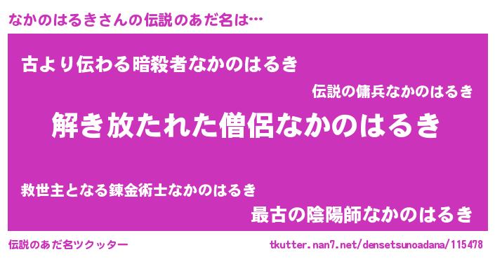 | ポケモン風あだ名 | 『ナカゴンZ』『ヒナカノハルキ』 |