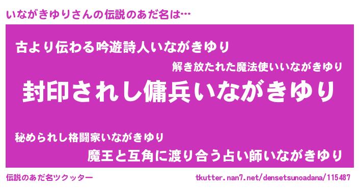 | 男性向けラノベタイトル風あだ名 | 『イナガキユリアートオンライン』 |