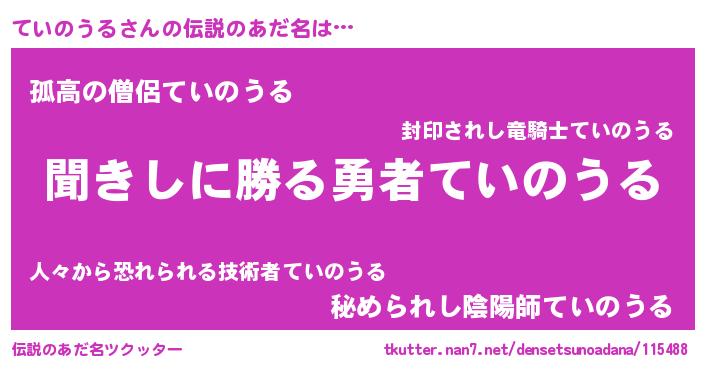 | 意味不明あだ名 | 『永久保存ていのうる』『自称ていのうる』 |