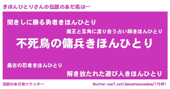 | ヒーロー風カッコイイあだ名 | 『スーパーキホンヒトリ』『仮面キホダー』 |