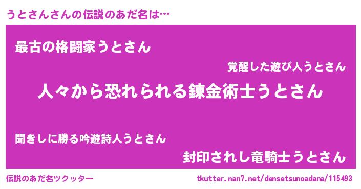 | ヒーロー風カッコイイあだ名 | 『仮面ウトダー』『友情の使者うとさん』 |
