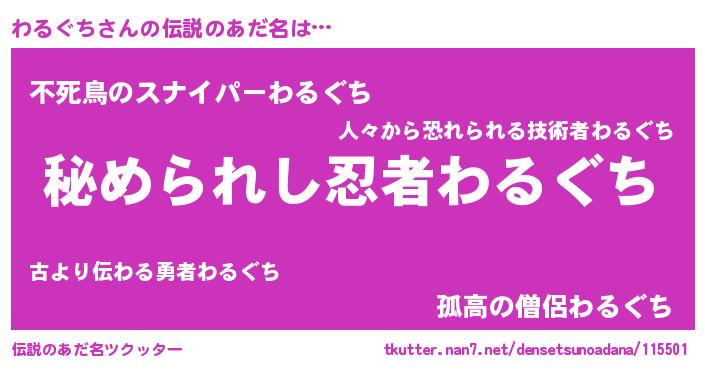 | 意味不明あだ名 | 『自称わるぐち』『わるぐちフォーエバー』 |