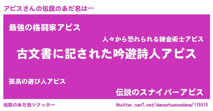 | ファンタジー風あだ名 | 『アピディッシュ』『ヴァルアピーナ』 |