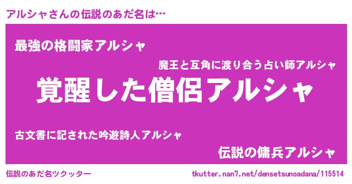 | 女子向けラノベタイトル風あだ名 | 『アルシャ様がみてる』 |