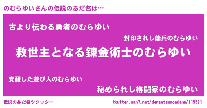 | 男性向けラノベタイトル風あだ名 | 『ノーゲーム・ノーノムラユイ』 |