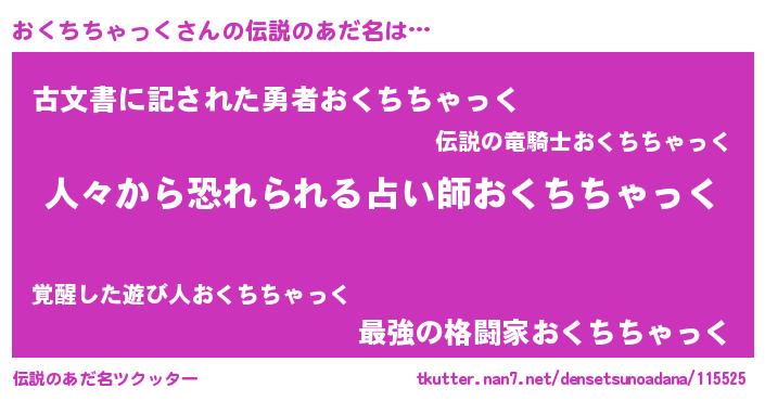 | 意味不明あだ名 | 『住所不定無職おくちちゃっく(56歳)』 |