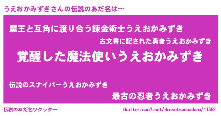 | ヒーロー風カッコイイあだ名 | 『炎刃騎士ウエ』『ネオウエオカミズキ』 |