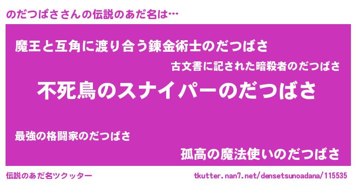 | 男性向けラノベタイトル風あだ名 | 『のだつばさの憂鬱』『緋弾のノダツバサ』 |