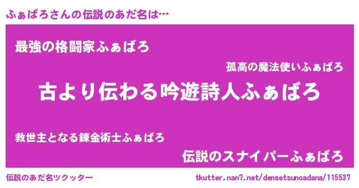| 意味不明あだ名 | 『自称ふぁばろ』『永久保存ふぁばろ』 |