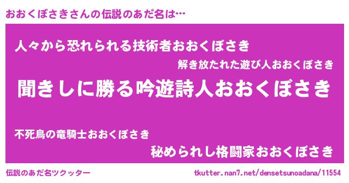 | 意味不明あだ名 | 『住所不定無職おおくぼさき(7歳)』 |