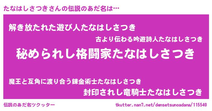 | 意味不明あだ名 | 『自称たなはしさつき』 |