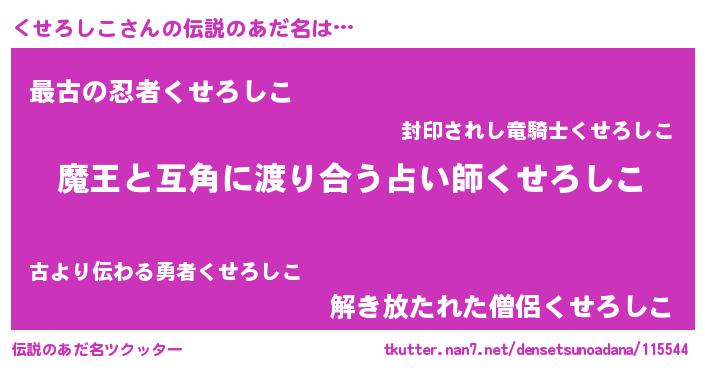 | 意味不明あだ名 | 『自称くせろしこ』 |