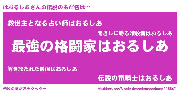| ヒーロー風カッコイイあだ名 | 『ウルトラはおるしあマン』 |