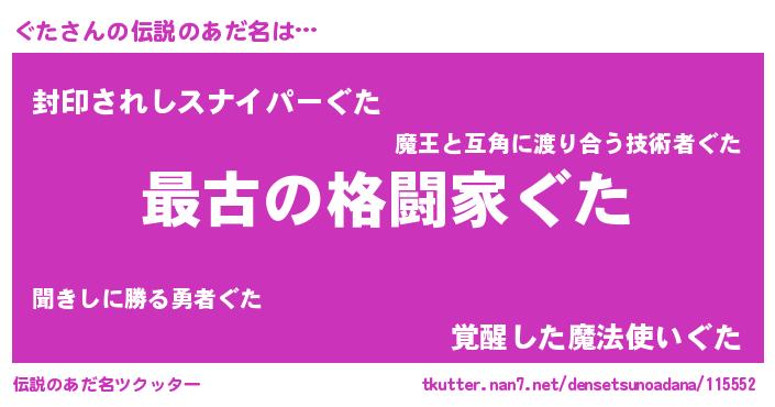 | 意味不明あだ名 | 『自称ぐた』『ぐたフォーエバー』 |