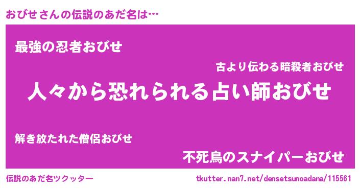 | 欧米人風あだ名 | 『アンジェラ・おびせ』『ダニエルおびせ』 |