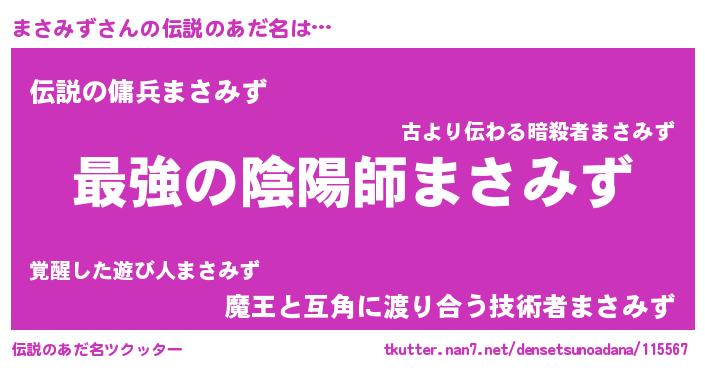 | ファンタジー風あだ名 | 『エターナルマサミズー』『マサフェル』 |