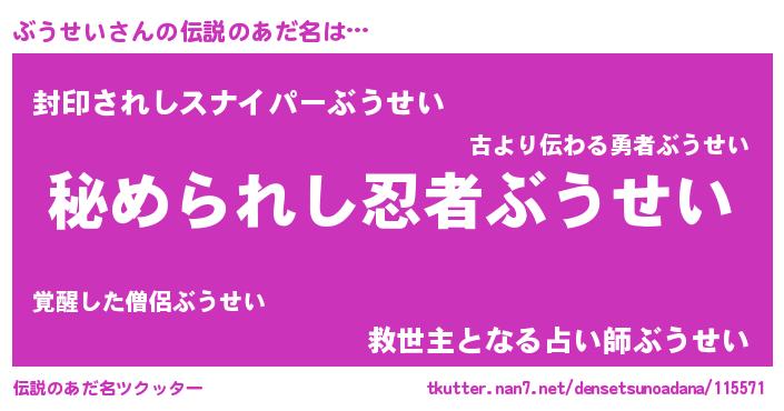 | ヒーロー風カッコイイあだ名 | 『ウルトラぶうせいマン』『ネオブウセイ』 |